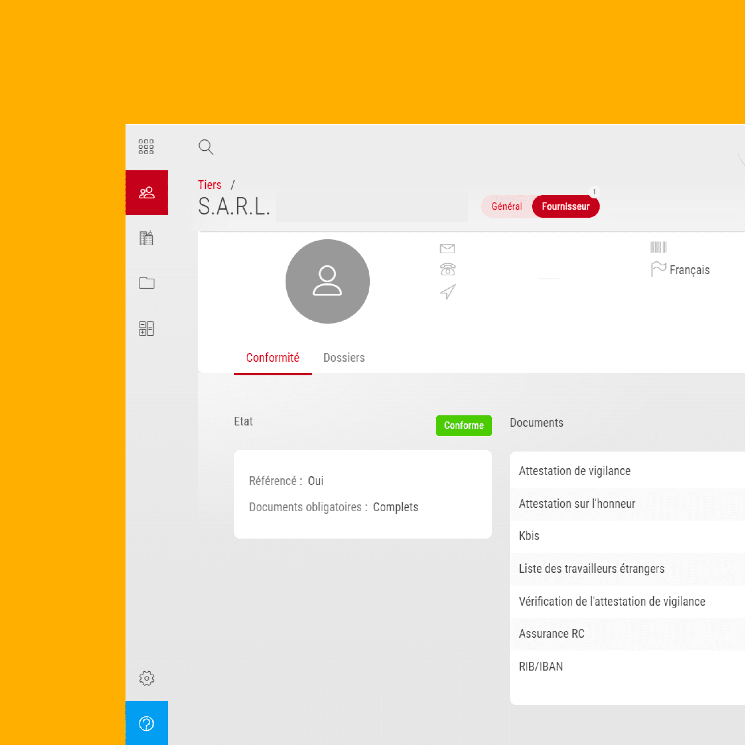 Lorsque vous sélectionnez un fournisseur pour déclencher un ordre de service ou une demande de devis, vous avez la responsabilité de vérifier son niveau de conformité.